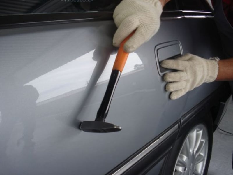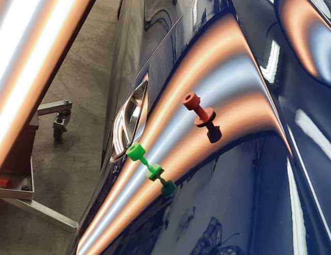 Mediante varillas con puntas especiales, se aplica presión desde el interior de la chapa para devolverla a su forma original, aprovechando la deformación plástica del material.